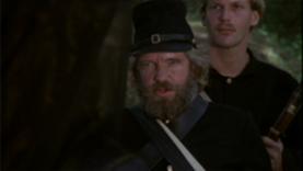 The private willfull tells Elkanah Bent the whereabouts of Charles by delivering General Duncan's address after Bent lied to him about looking for his old comrade. When Bent leaves the registration office, a major recognises him by a wanted poster on the wall, but too late.