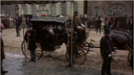 PS: Ein plötzlich einsetzender Regenschauer am Drehtag zwang dazu, einen Teil der Szene in die Halle zu verlegen und eine geschlossene Kutsche direkt vor die Eingangstreppe zu fahren.