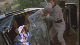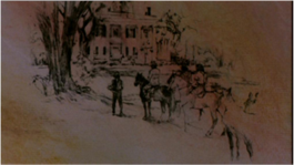 (Tillet und Clarissa fahren mit der Kutsche ein, Orry zu Pferde)