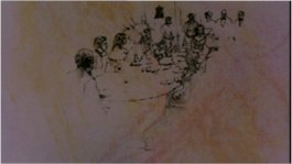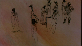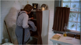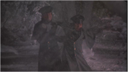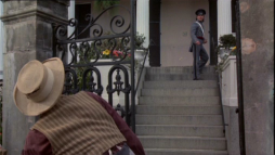 (1) Regiefehler: Tillet und Orry gehen die Diele entlang zum Speisesaal. Links von ihnen sind die Laufschienen des Kamerawagens zu sehen !!