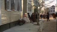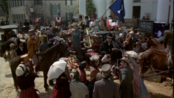 > Statists: pedestrians, campaigners, soldiers in grey uniforms, marching band