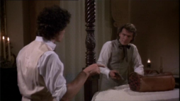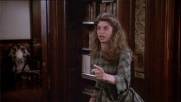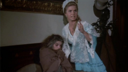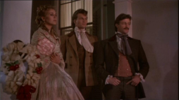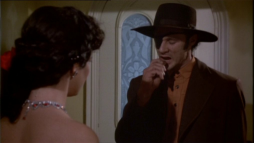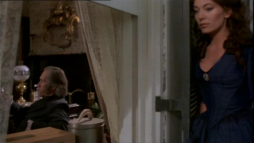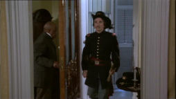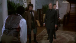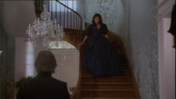 (1) Director's error: When Constance climbs the stairs to meet Virgilia there, an electrical device is to been seen on the wall at the stair bottom (a movement or humidity sensor?) Later on in this scene, the device is hidden by different camera angles behind a wooden bar.