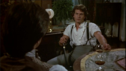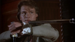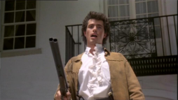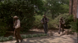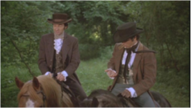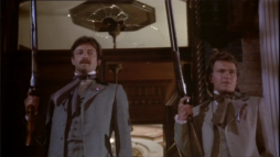George and Orry confront the men from an upper balcony with long guns in hand,