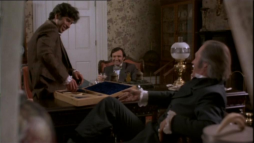George and Orry promptly ride off the the depot. That is when Virgilia turns to leave the house as well, but Constance sees that she wants to take costly wardrobe and silverware with her. Constance lets her go with that but makes very clear, that this was the very last time for Virgilia.