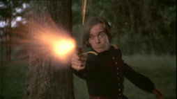 Billy............................. Stay behind me, Brett. (pulls his gun, to the bandid) You stay back, alright?