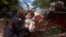 George........................ Much obliged. - Orry, just a minute. (exchanges their cockades) You might as well wear the real thing. (they embrace, Orry drives off)