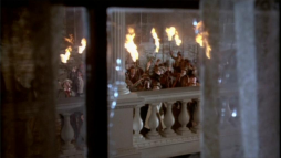 Location: Belvedere, hall, library, balcony above main door, at night