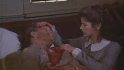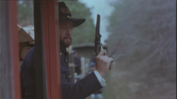 accompanies a troop transport by rail, when the train is stopped by rebels