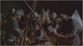 In Confederate camp near Petersburg, Charles stopps his comrade Jim from leaving, who after four years of war is disillusioned by the senslessness of it, but ultimately lets him pass.